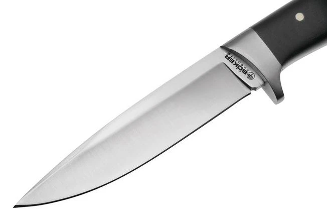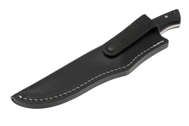 The Böker Arbolito Newenche is a strong fixed blade knife inspired by the rugged nature of Patagonia. The robust N695 blade with full-tang construction and handguard offers maximum safety in outdoor, bushcraft and camping activities. The black G10 handle scales with brown liners ensure a comfortable and firm grip. The handle features a lanyard eye. The knife comes with a high-quality leather sheath, handmade in Argentina for real adventurers.