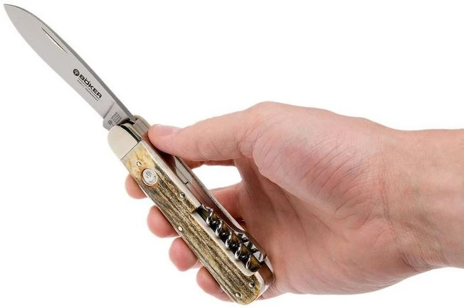 The Böker Hunters Knife Trio is a classic German pocket knife enhanced with multiple tools, perfect for hunters. A standard blade, a (bone) saw with bottle opener and a cork screw. Fans of this type of German traditionals are in for a treat.