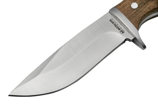 The Böker Magnum Walnut Drop 02SC338 is an all-round outdoor knife, at an attractive price. This knife is perfect for hunters, bushcrafters, collectors or just knife fans. The large guard keeps your fingers safe while cutting and the fine hollow grinding offers excellent cutting capabilities.