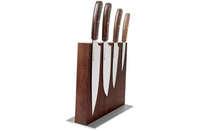 This Böker Pure CPM five-piece knife set was designed by Danish knife maker Jens Ansø. He is mostly known in the pocket knife world, but has now also started focusing on top-quality kitchen knives in cooperation with Böker. For this knife the Dane became inspired by the functional and modern Bauhaus style. This style represents simplicity, minimalism and ease of use. That is also why Böker called this collection ‘Pure’.