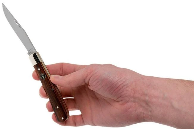 The Böker Trapper Uno Desert Ironwood 112565 is a classic gentleman’s knife. Its design looks friendly and traditional. The Trapper pattern has been produced for many years by many brands. Few, however, are able to create such a nice and subtle Trapper like Böker.